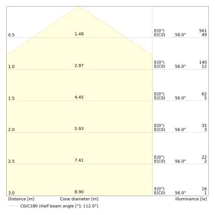 ![]() De kleurcode is een combinatie van de kleurweergave (CRI) en lichtkleur (Kelvin). Het eerste getal is de kleurweergave (1 = zeer slechte kleurweergave, 9 = maximale kleurechtheid). Het tweede en derde cijfer betreft de lichtkleur. Een lamp met kleurcode 830 heeft bijvoorbeeld een goede kleurweergave en straalt een warm wit licht uit (3000K), waar een lamp met de kleurcode 940 een uitstekende CRI heeft en een koel wit licht (4000K) uitstraalt. |
