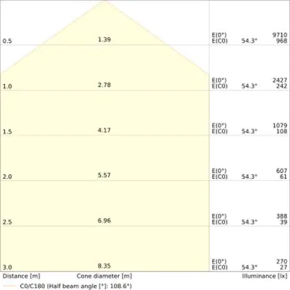 ![]() De kleurcode is een combinatie van de kleurweergave (CRI) en lichtkleur (Kelvin). Het eerste getal is de kleurweergave (1 = zeer slechte kleurweergave, 9 = maximale kleurechtheid). Het tweede en derde cijfer betreft de lichtkleur. Een lamp met kleurcode 830 heeft bijvoorbeeld een goede kleurweergave en straalt een warm wit licht uit (3000K), waar een lamp met de kleurcode 940 een uitstekende CRI heeft en een koel wit licht (4000K) uitstraalt. |