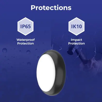 ![]() De IK waarde staat voor de slagvastheid en bescherming tegen vandalisme. Dit wordt uitgedrukt in combinatie met 2 cijfers (IK00 - IK10). Producten met IK00 zijn niet beschermd tegen weerstand, terwijl producten met IK10 weerstand bieden tegen schokken van 20 Joule en tevens vandaalbestendig zijn. |